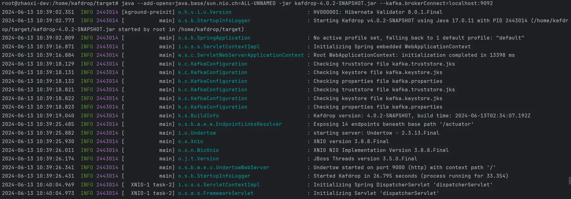 kafdrop-<version>.jar需要替换为具体版本,如kafdrop-4.0.2-SNAPSHOT.jar。 -